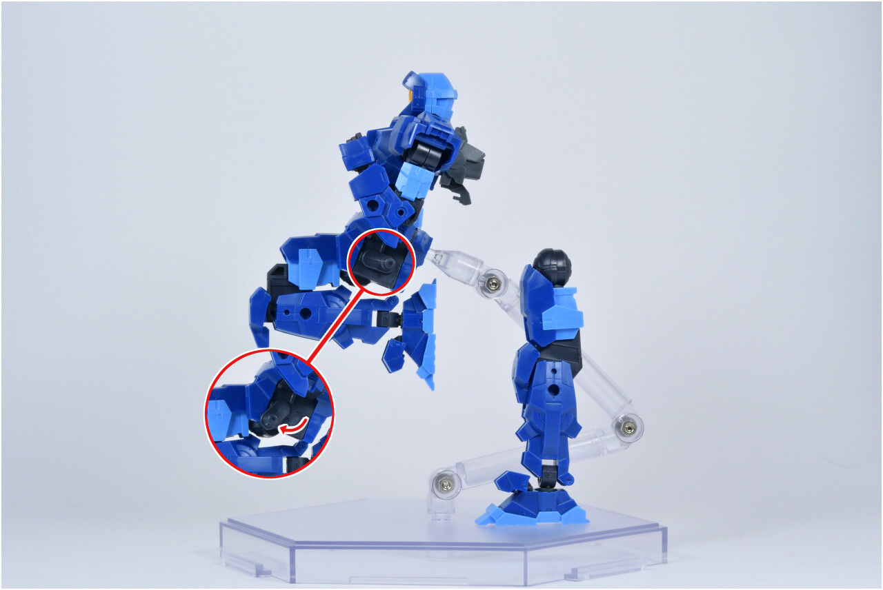 股関節部分はスイングするのですが、こちらのほうが緩いため足を動かすと常に股関節側が動くという……(ここも調整してやるといいですね)